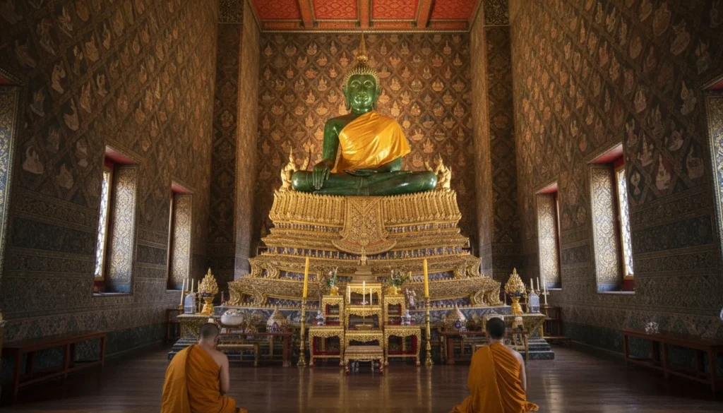 Inside the temple sits the Emerald Buddha, a revered statue carved from a single block of jade. Although the statue is relatively small, its importance to Thai people is enormous.